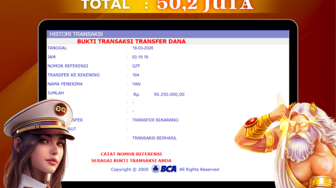 Bukti transfer yang dapat anda lihat adalah bukti SAH / VALID yang langsung di dapatkan melalui bukti transaksi dari Bank yang digunakan untuk pengiriman dana pada rekening pemilik user id. Terima kasih kami sampaikan kepada para pengguna setia DEWALIVE yang telah menggunakan situs kami, sebagai Bandar Terpercaya yang pastinya membayar semua kemenangan member hingga lunas. Apakah DEWALIVE PENIPU ? Reputasi “DEWALIVE TERPERCAYA” sudah sangat melekat.